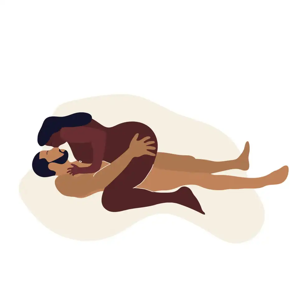- How: The receiver lies on top of the giver, legs bent and pulled in. The giver wraps their arms around and thrusts.